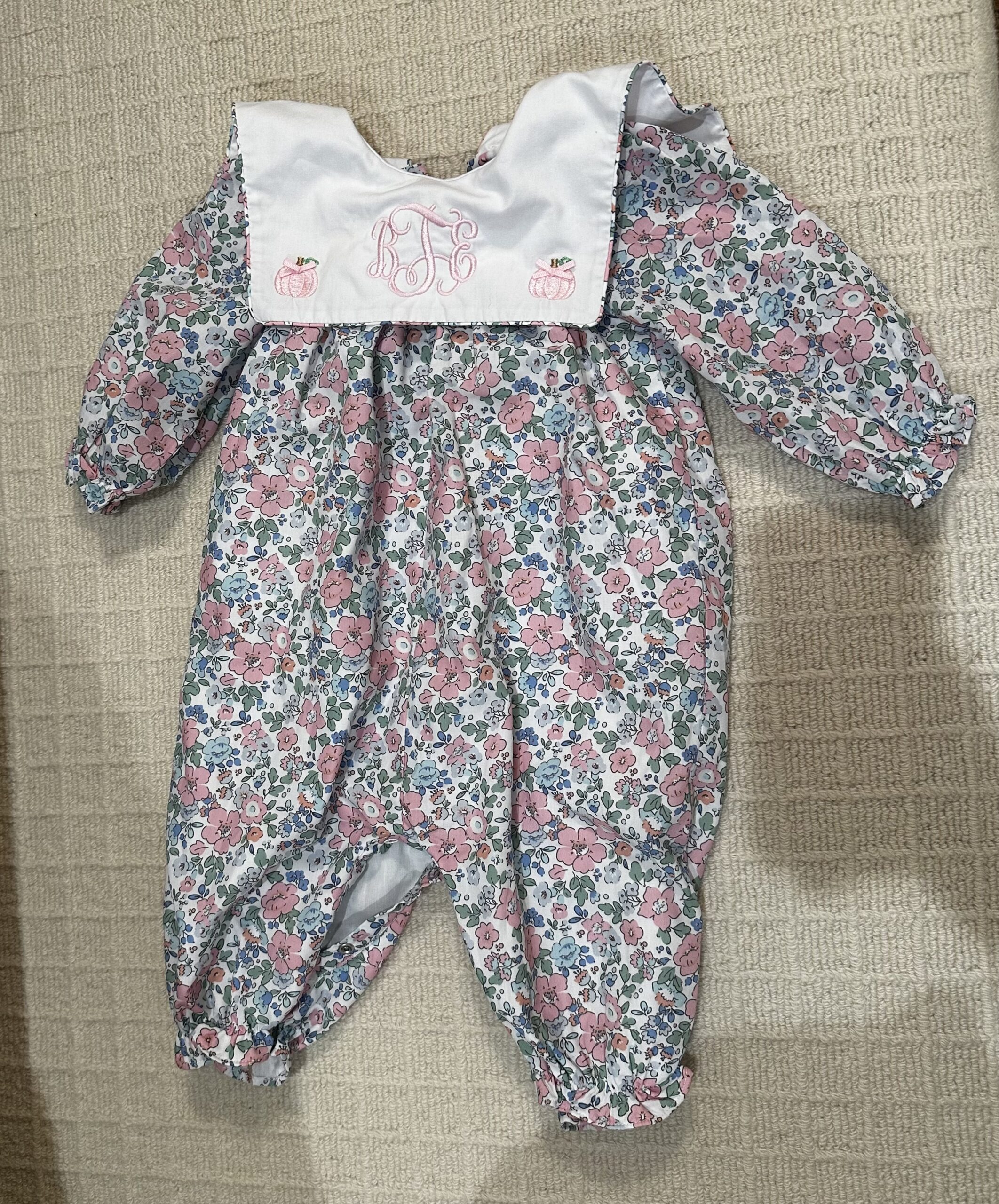 “bTe” monogrammed pumpkin onesie. Cecil & Lou. Worn twice- excellent condition