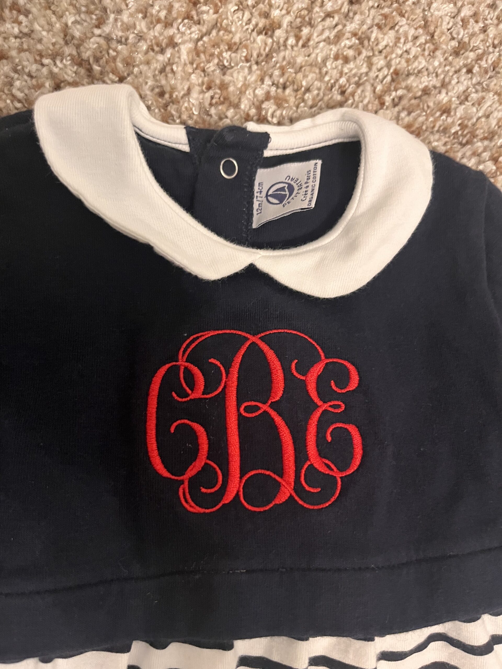 We wore this as a dress and then a top with red leggings. brand is petite bateau and was purchased in Paris