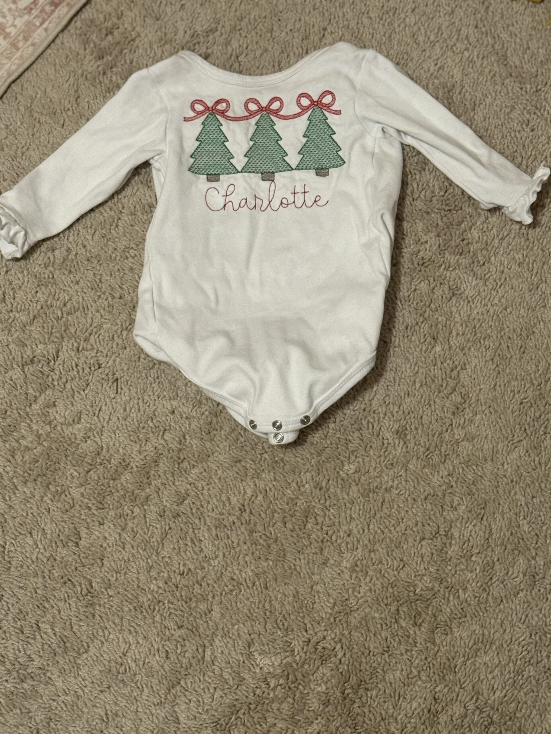 Charlotte size 12 month blanks boutique embroidered christmas long-sleeve onesie with ruffles
