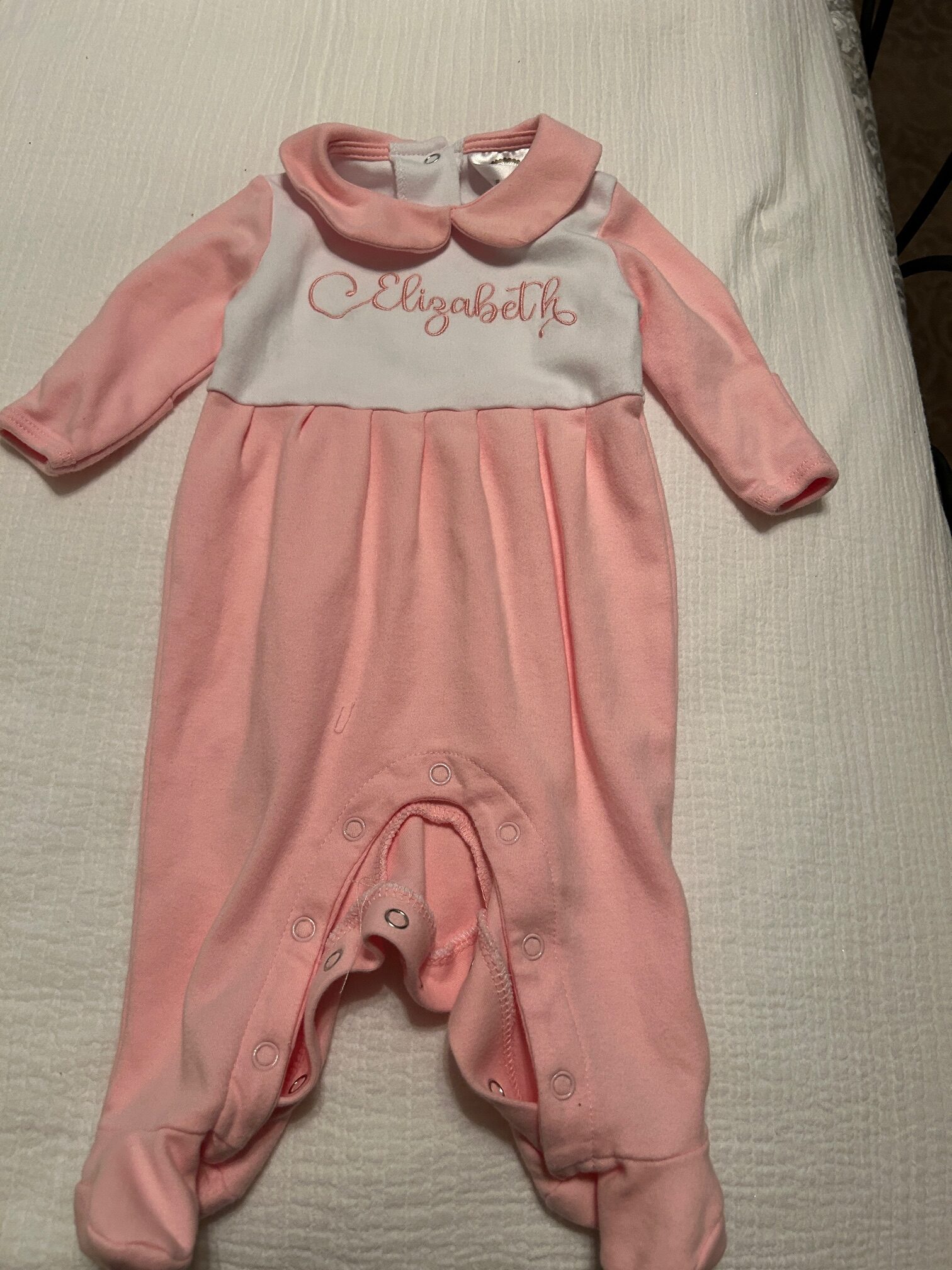 Sweet little blanks botique one piece with feet. Only worn one time. No stains. Perfect condition.