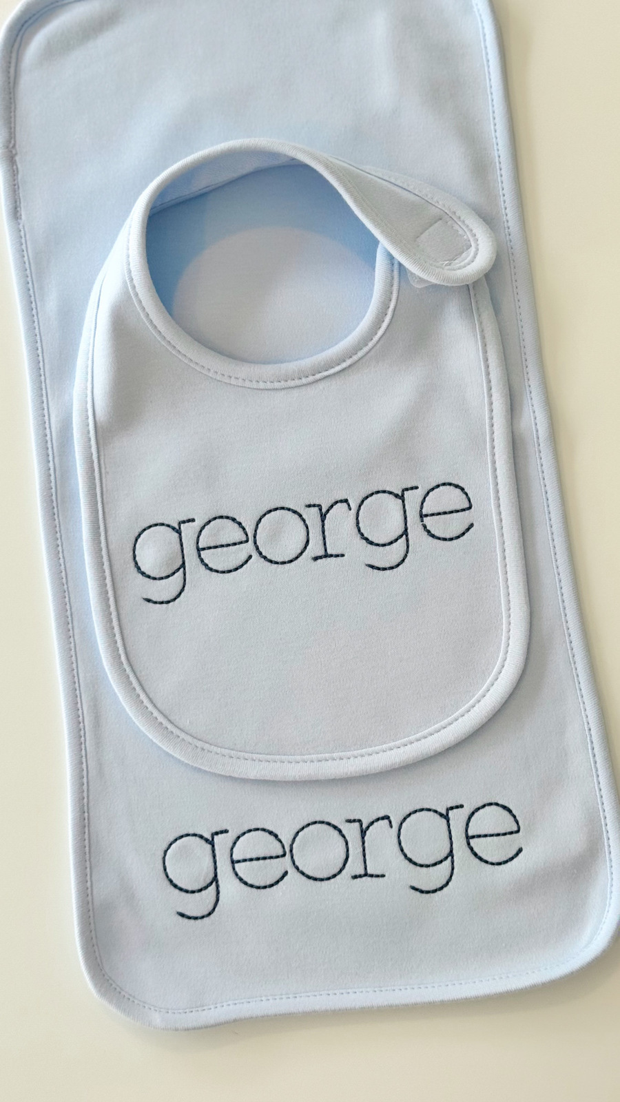 100% Cotton Light Blue Bib & Burp Cloth. Name: George