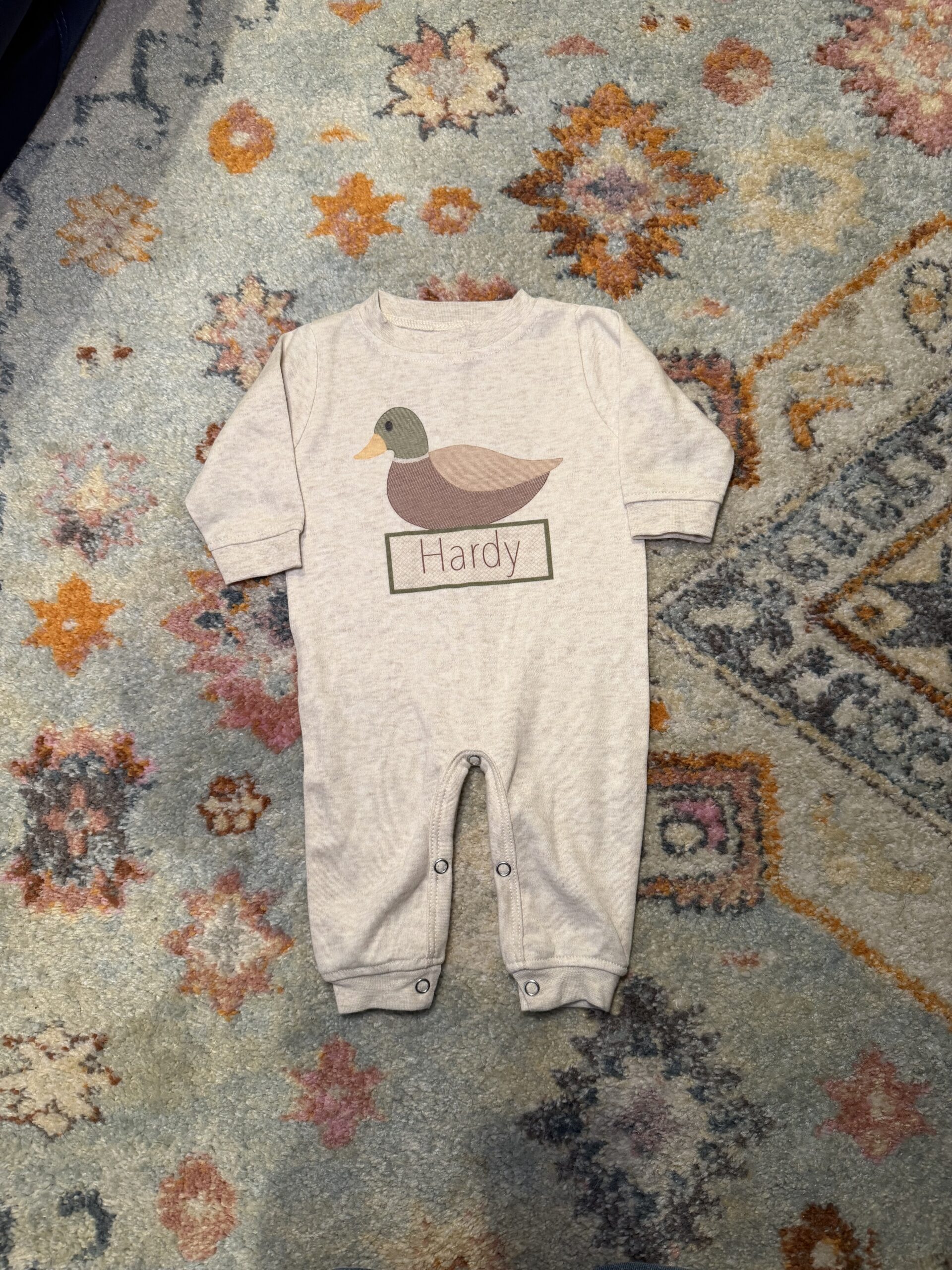 “Hardy” sublimated romper. Never worn. 0-3m, Laughing Giraffe brand.