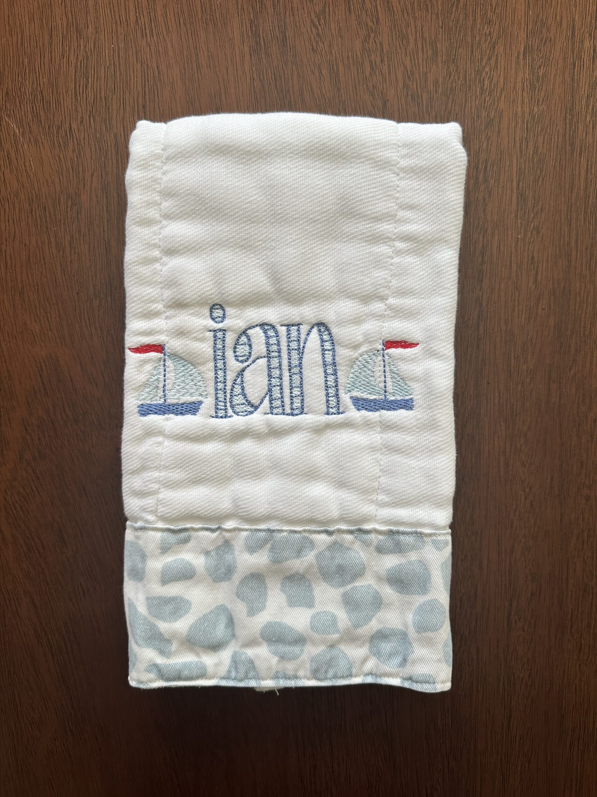 Ian burp cloth with fabric trim and sailboat accents!