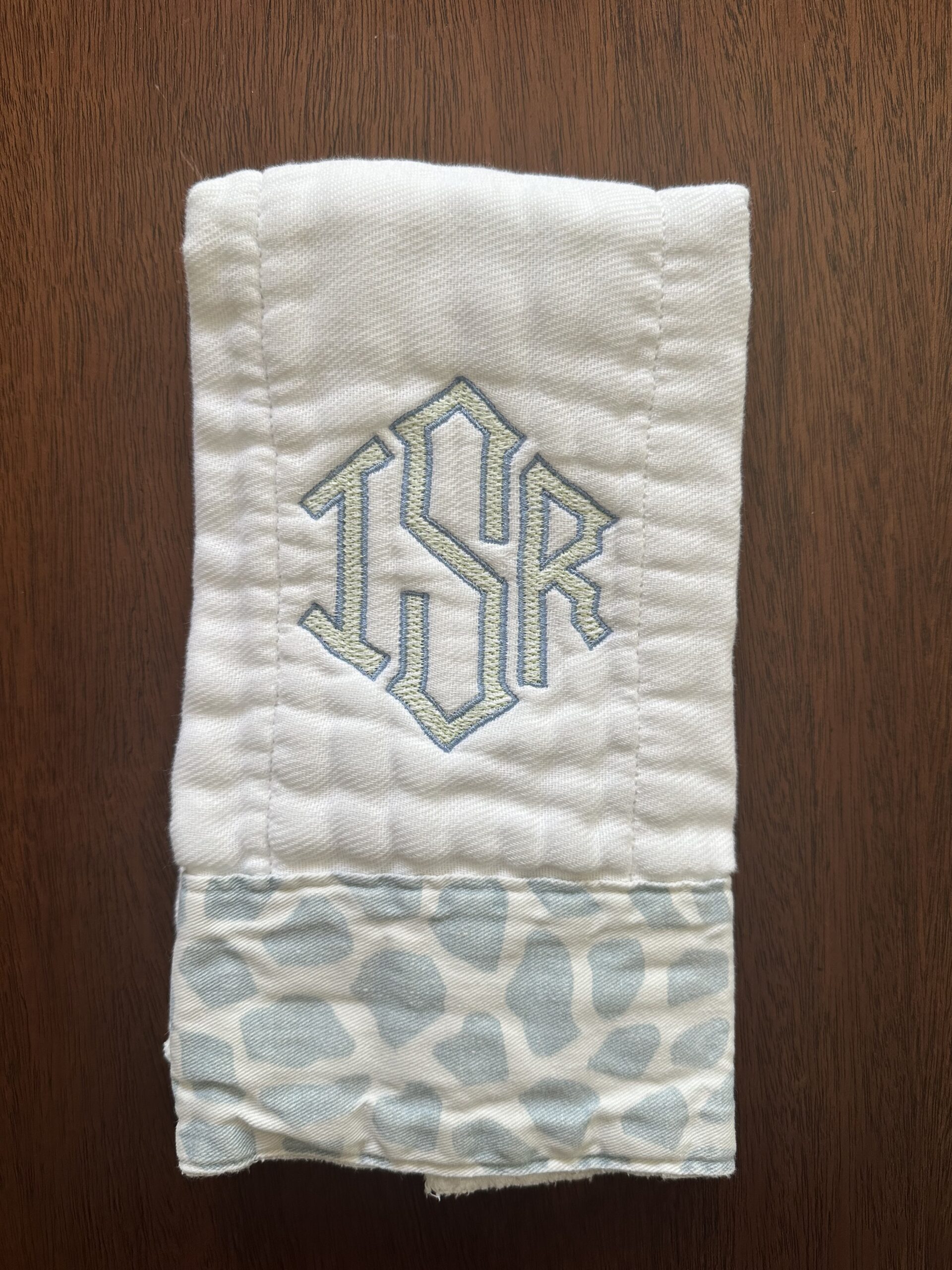 Burp cloth with fabric trim and ISR initials!