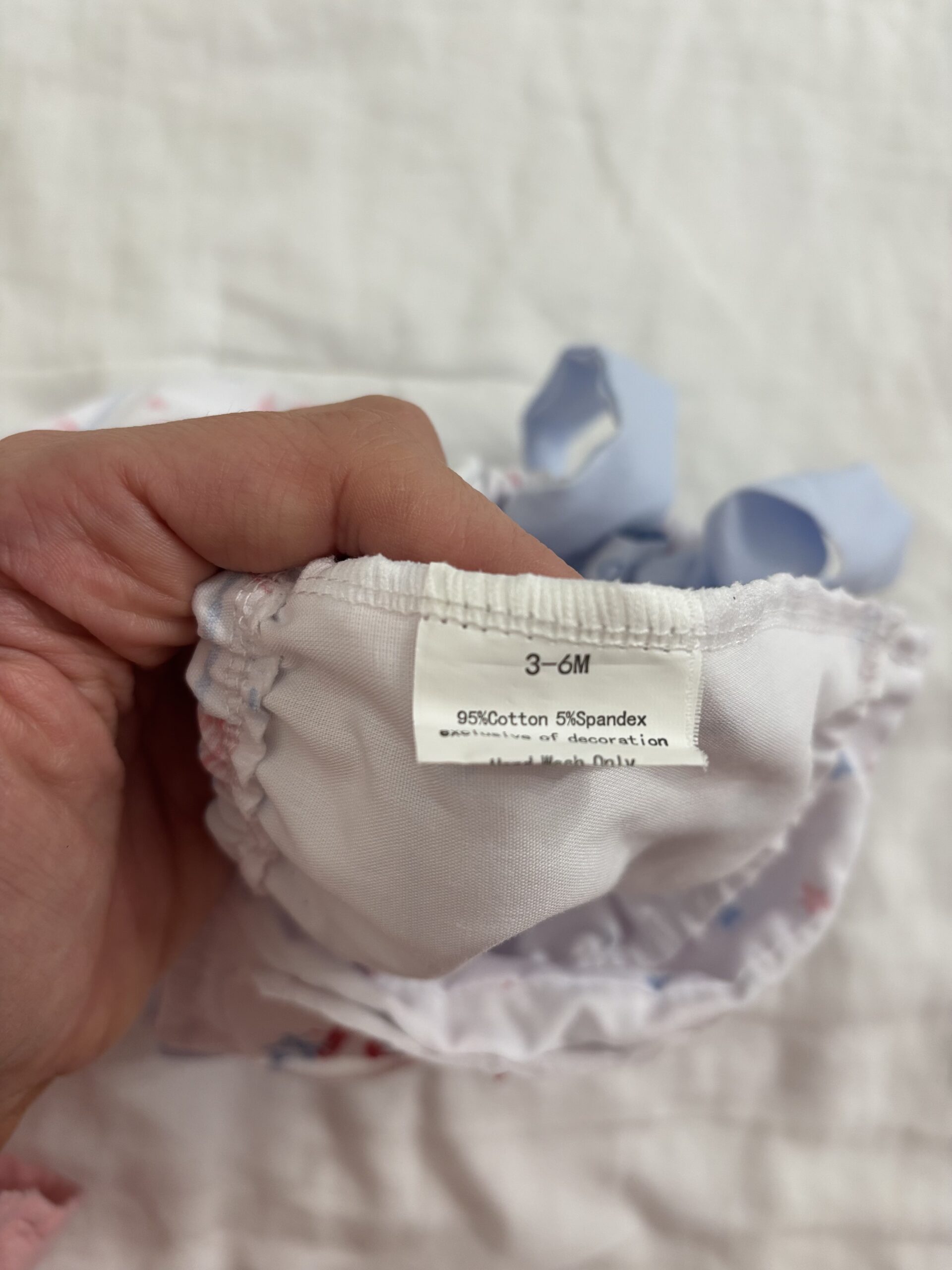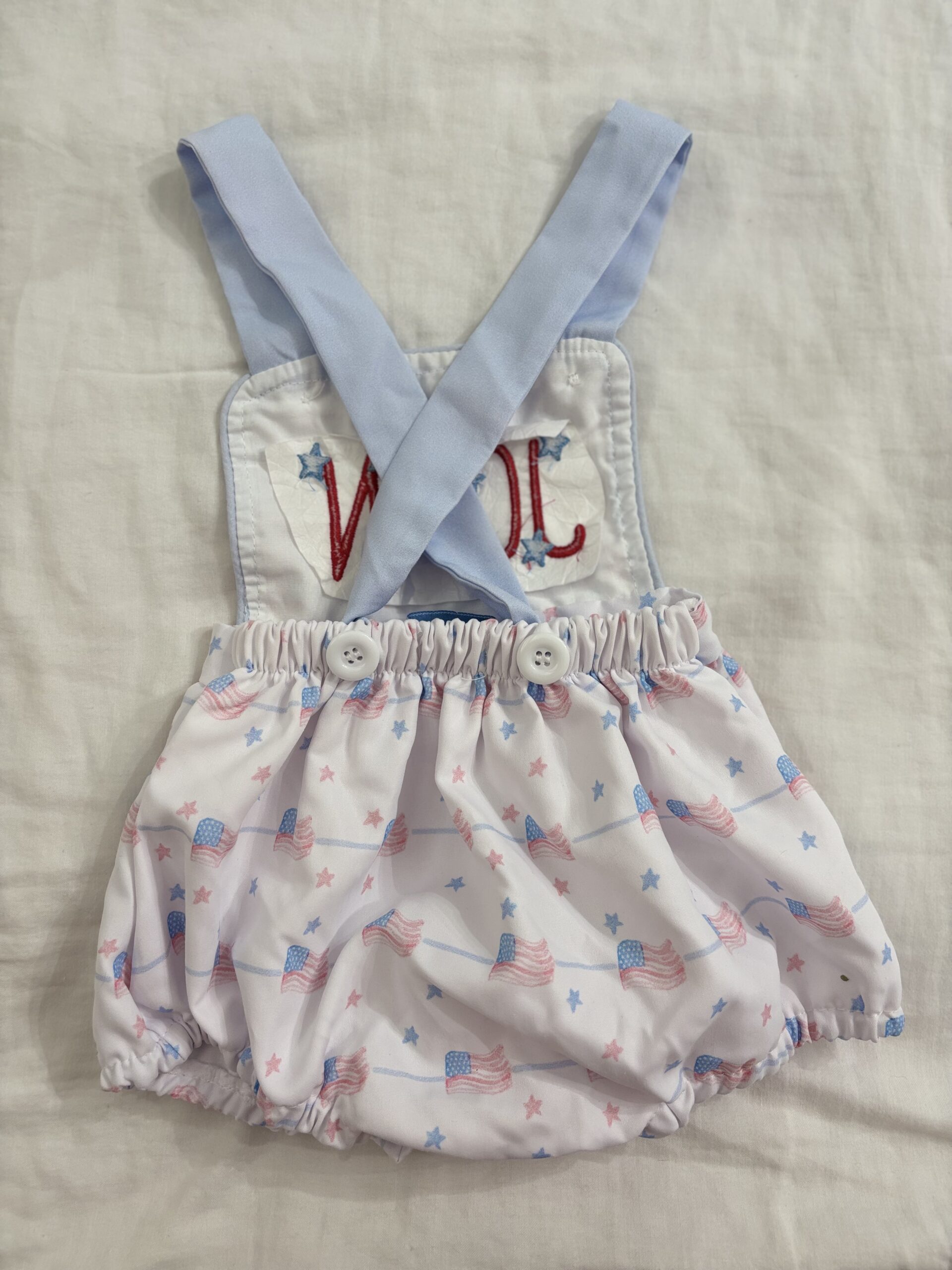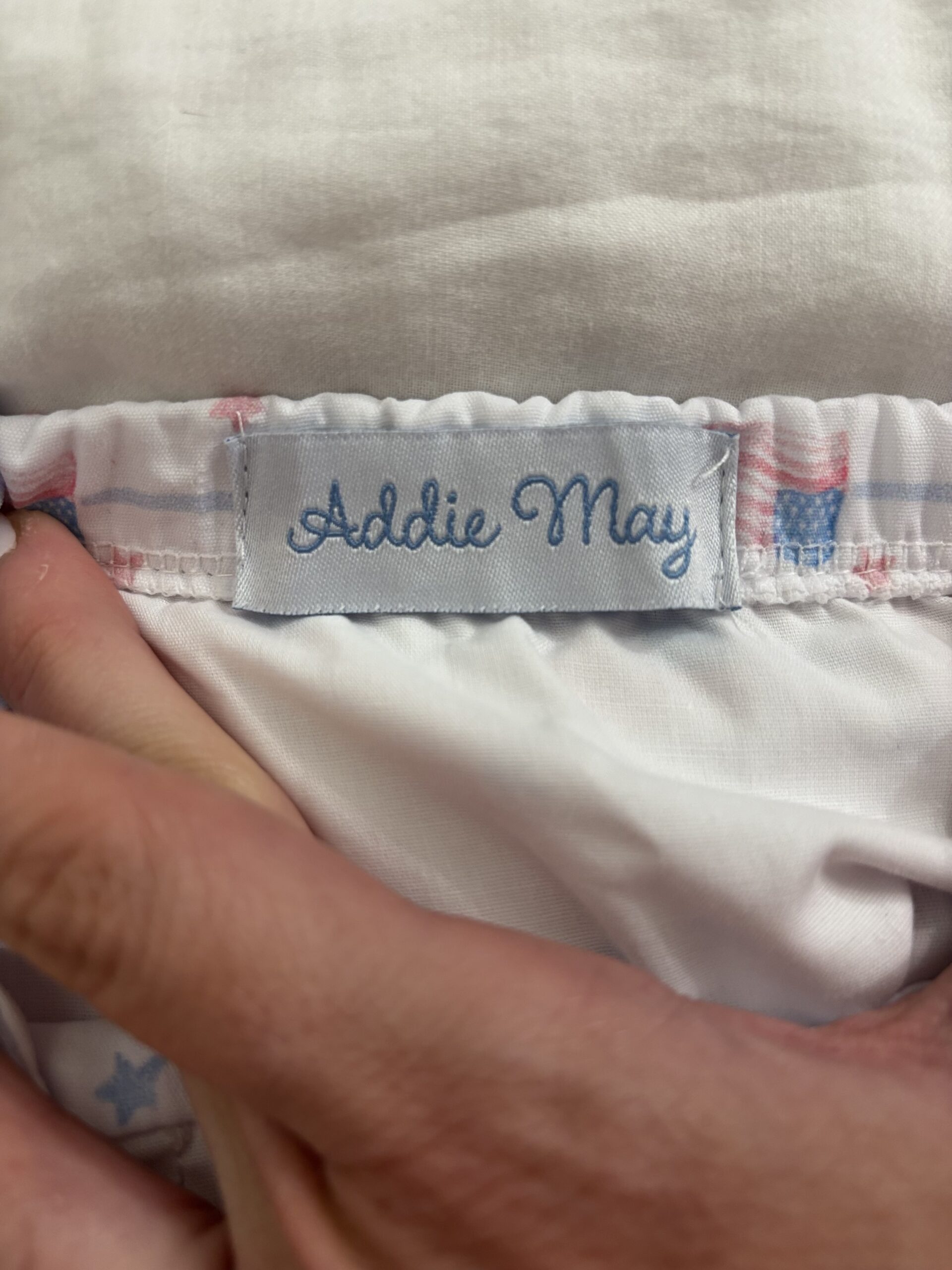 Adorable One-piece for Summer and perfect for the Fourth of July celebration! Size is 3-6 months in “like-new” condition! Addie May Collection