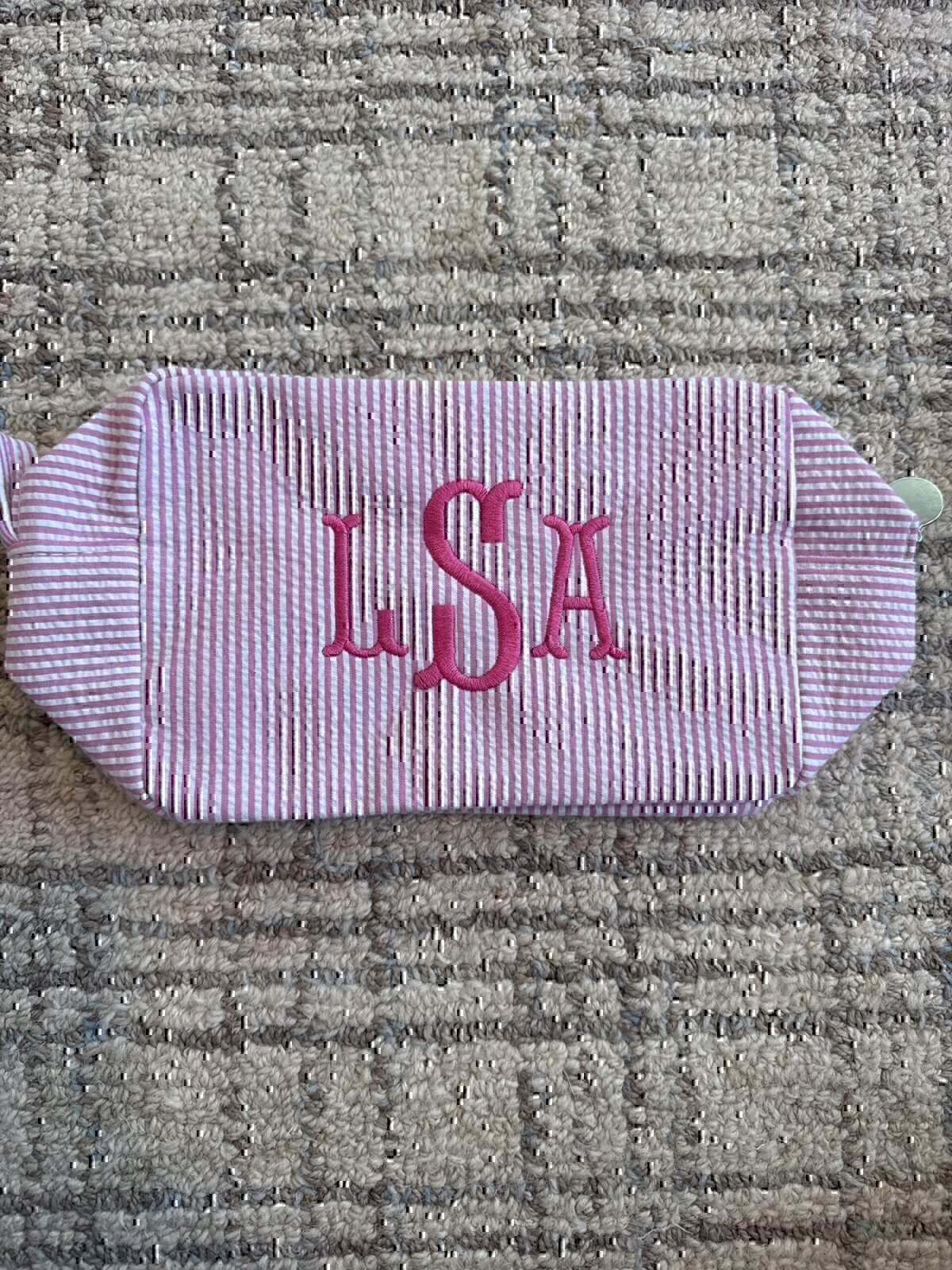 Sprinkled with Pink seersucker pouch