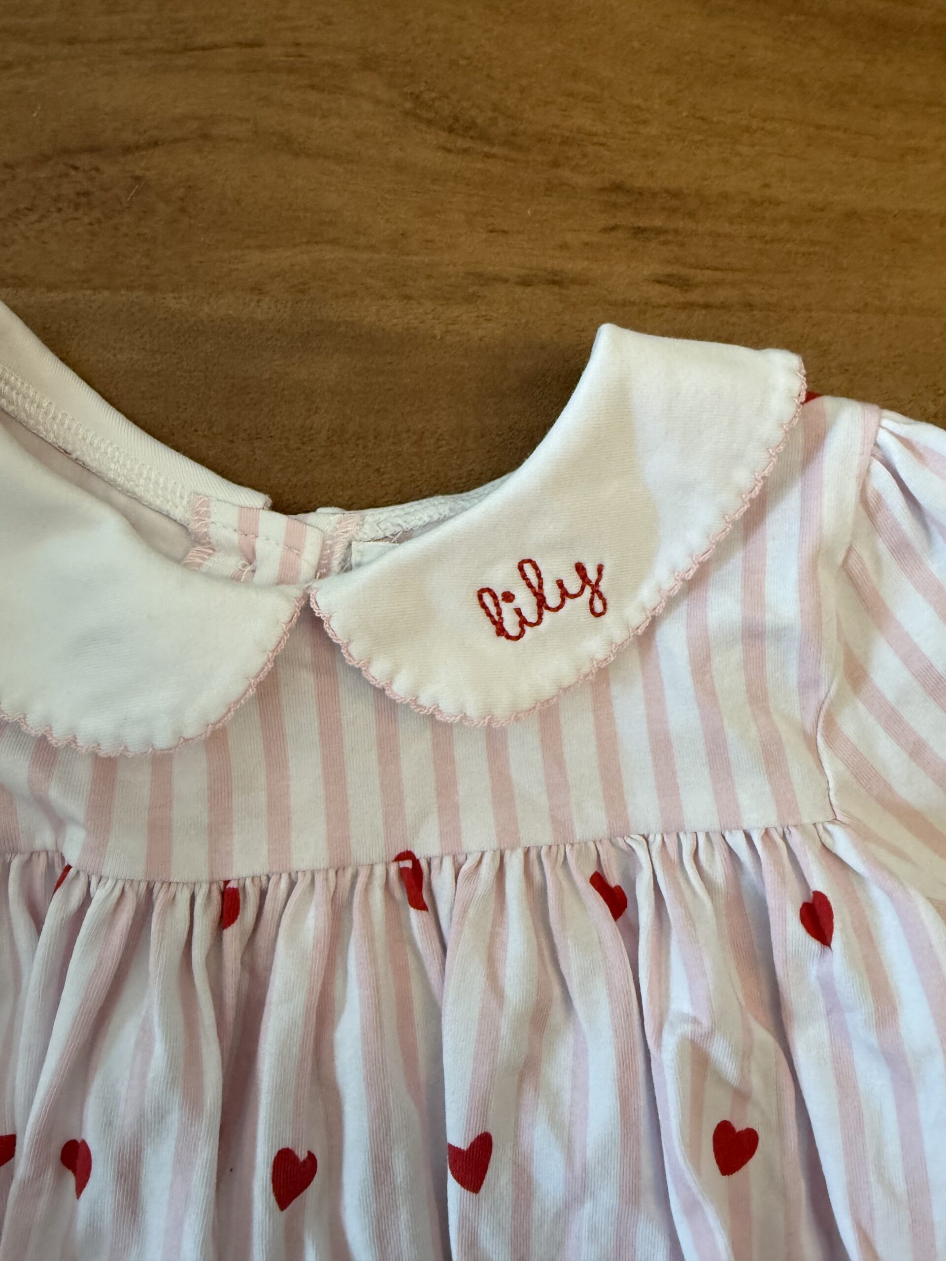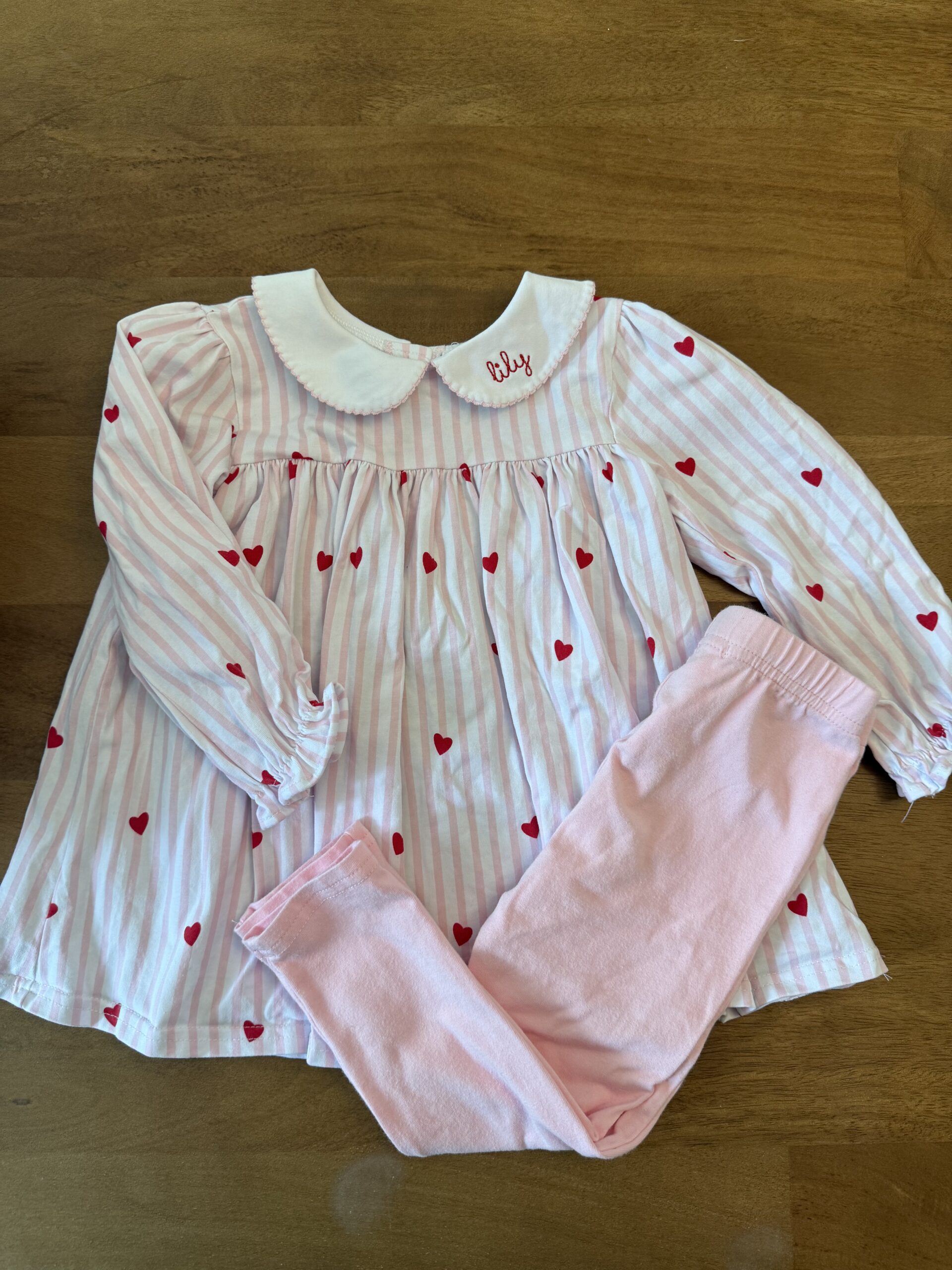Pink Heart Tunic with peter pan collar. Stretchy jersey material with button closure in the back.