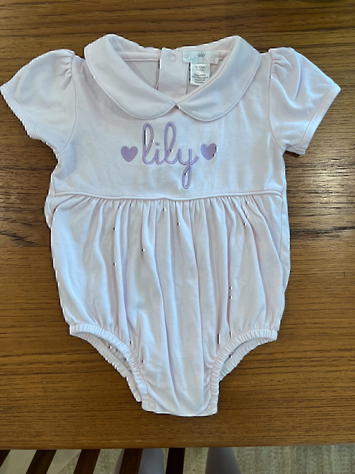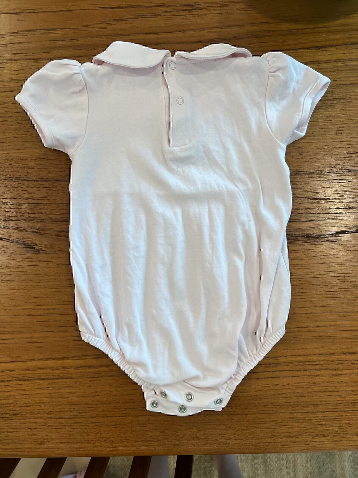 Adorable pink onesie! No stains, worn a few times. Ready for its new owner!