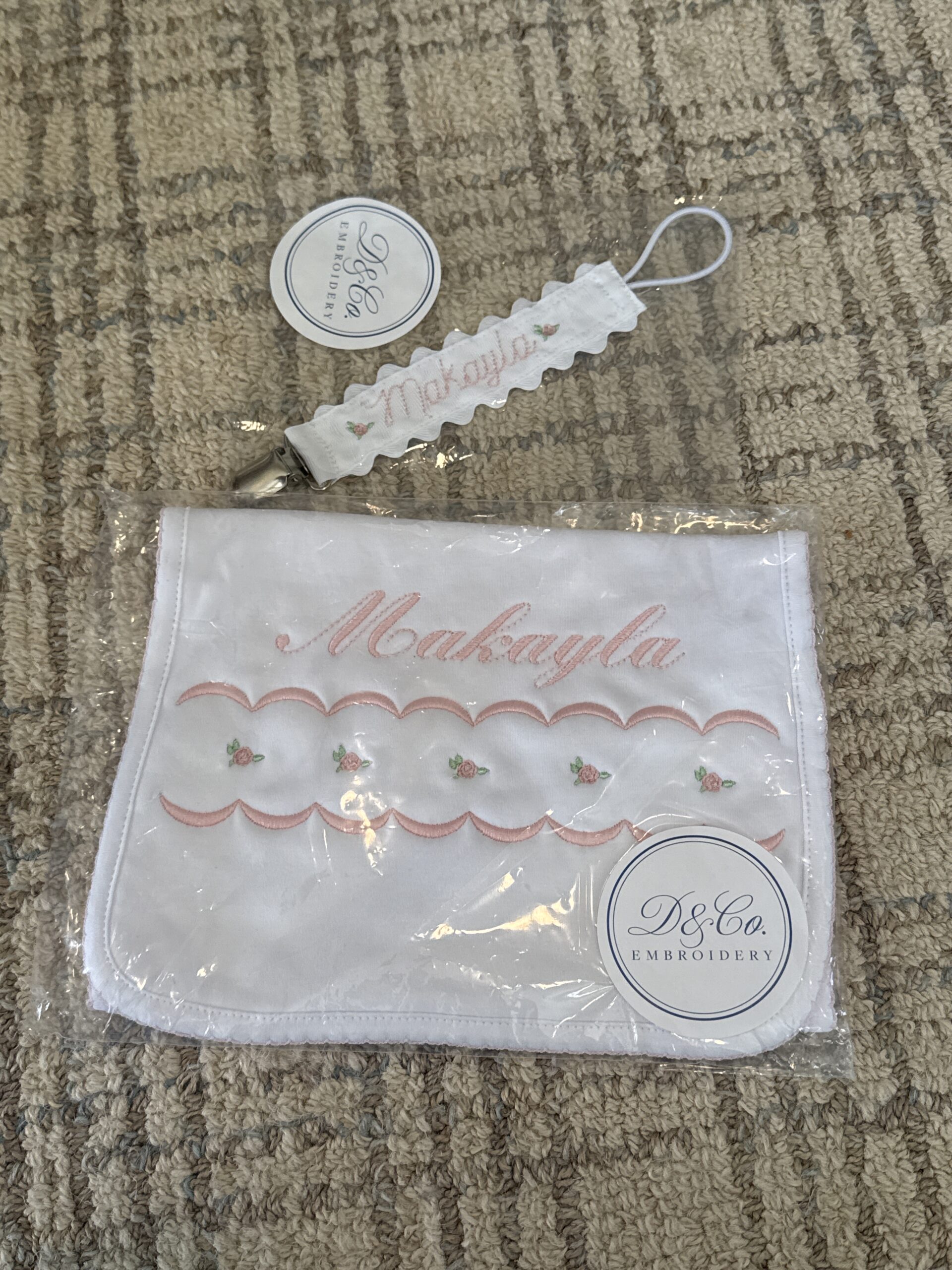 Daughter & Co burp cloth and paci clip