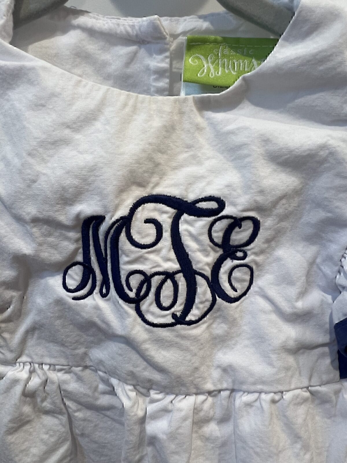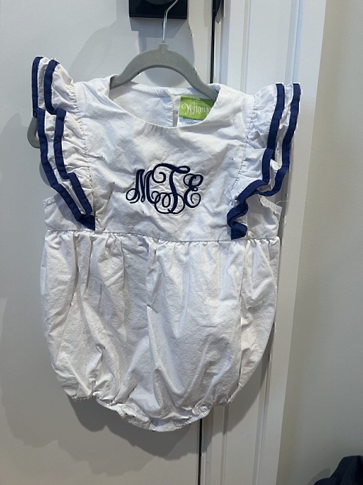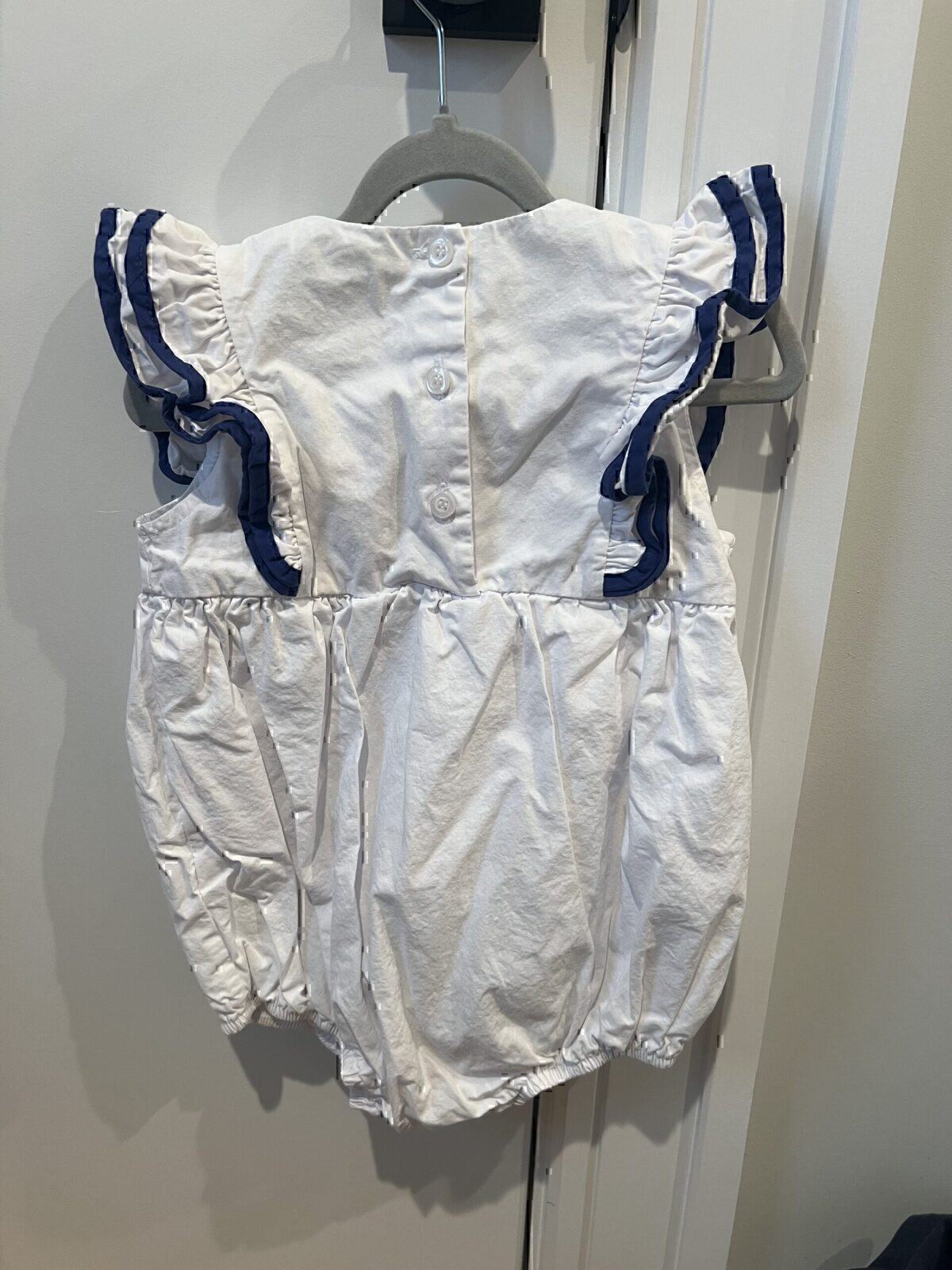 White with Navy Trim Classic Whimsy Ruffle Bubble, 3T