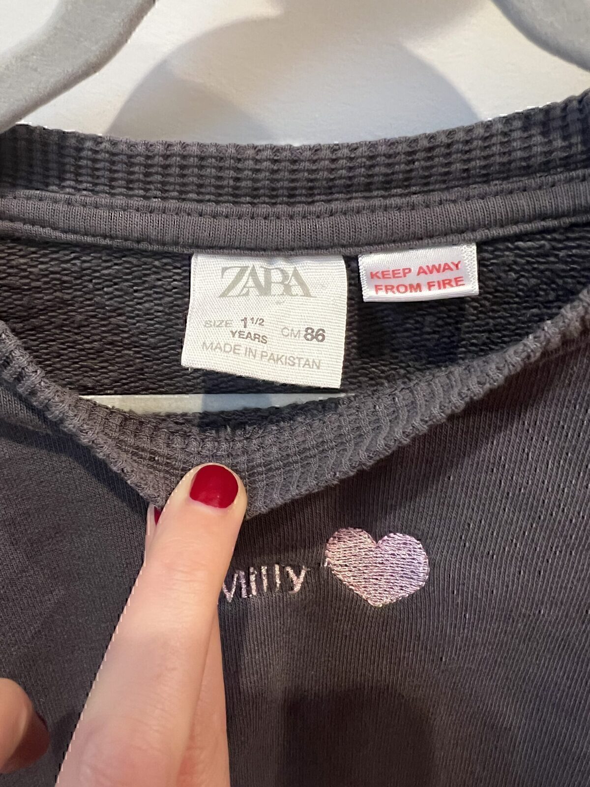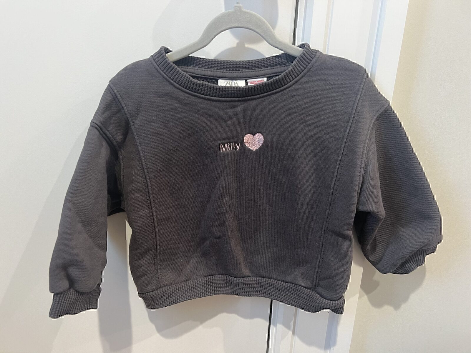 Great condition Grey Zara “Milly” Sweatshirt with waffle trim. Size 1 1/2 years, but runs large.