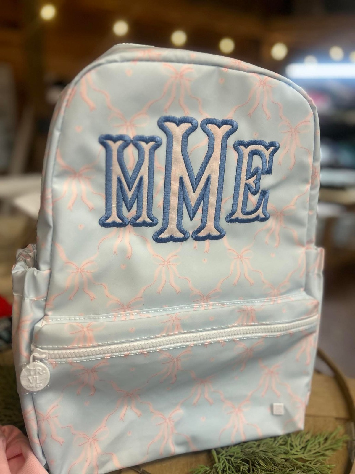 NWT large “Eloise Bow” backpack from TRVL with MME appliqué