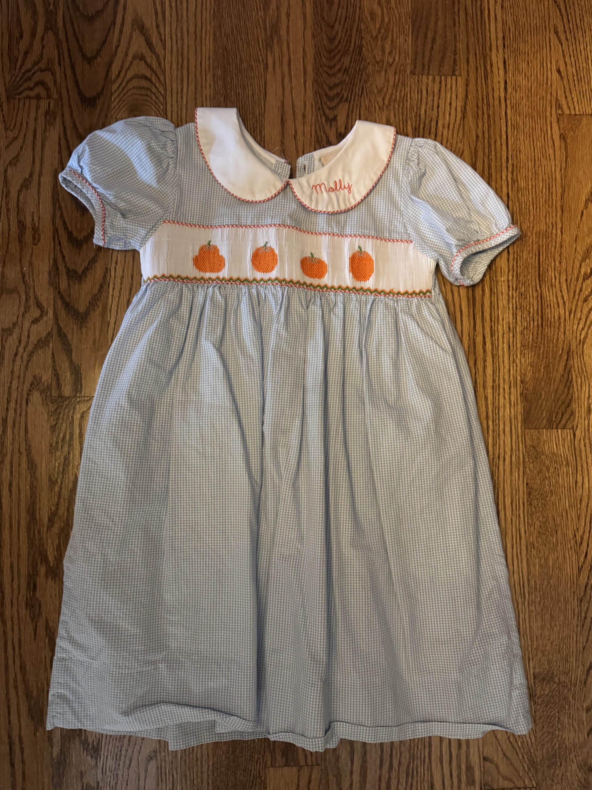 Smocked Pumpkin Dress with “Molly” on the collar!
