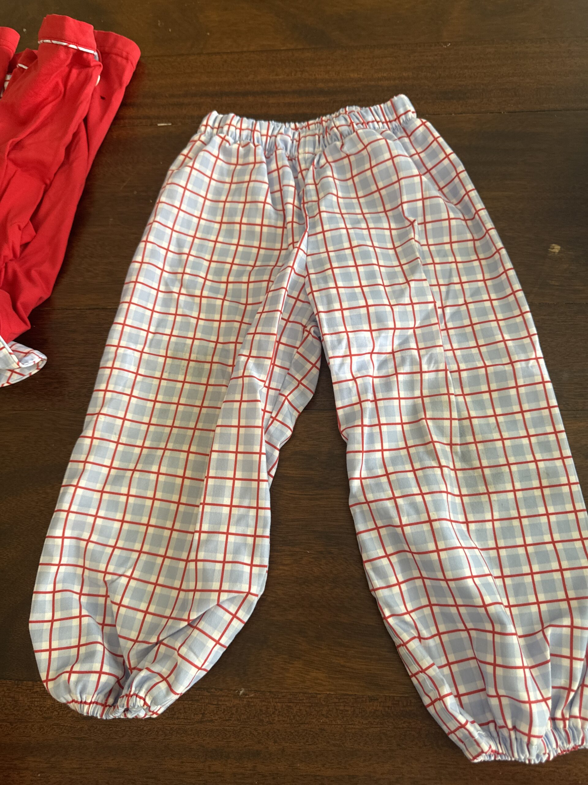 2t boys set with bubble hem pants. Buttons on side tabs have come unstitched, just need a quick stitch to tack them back down. GUC because we wore a lot, but other than the buttons, I don’t see anything. Great for school on chilly days!