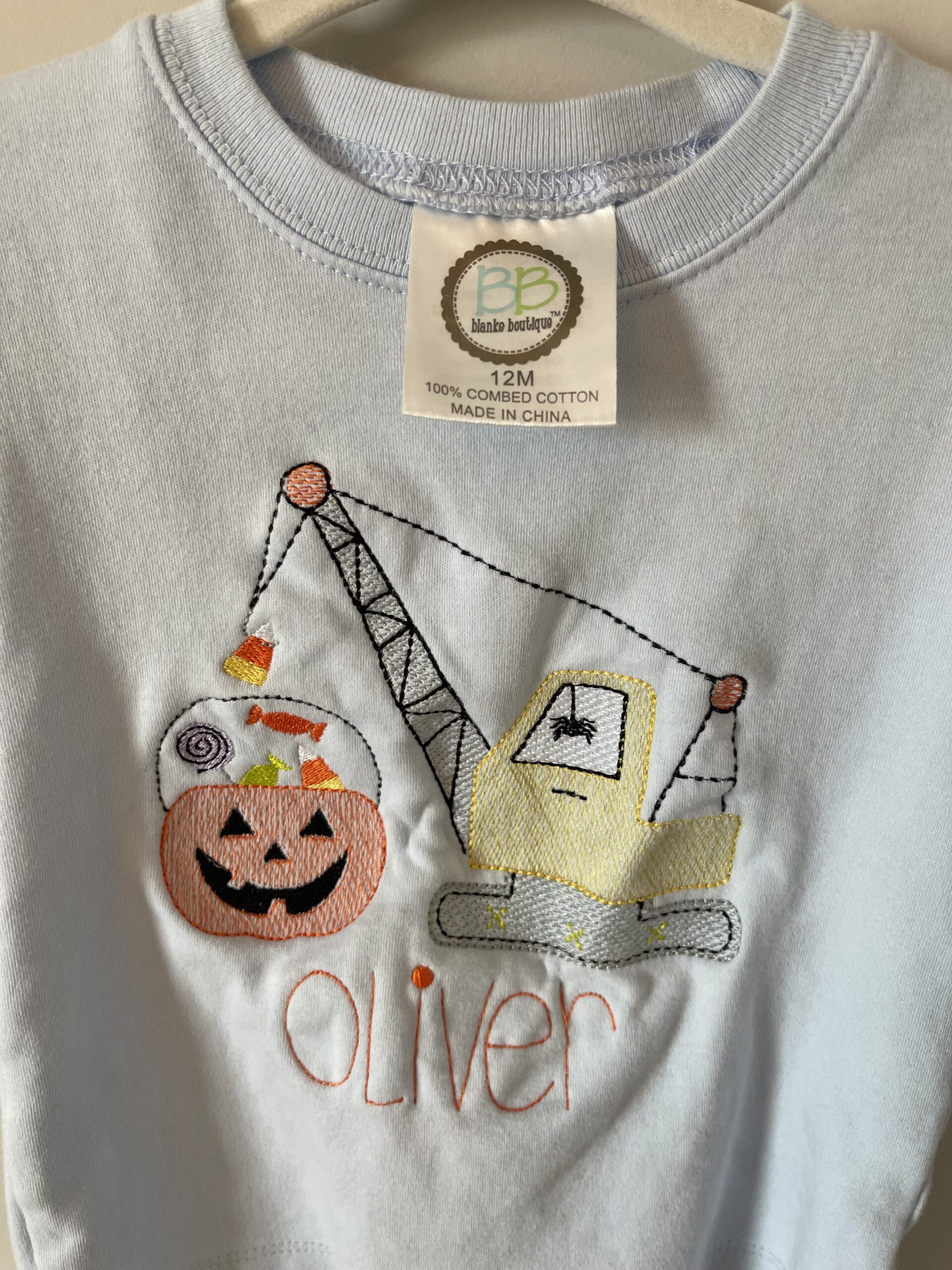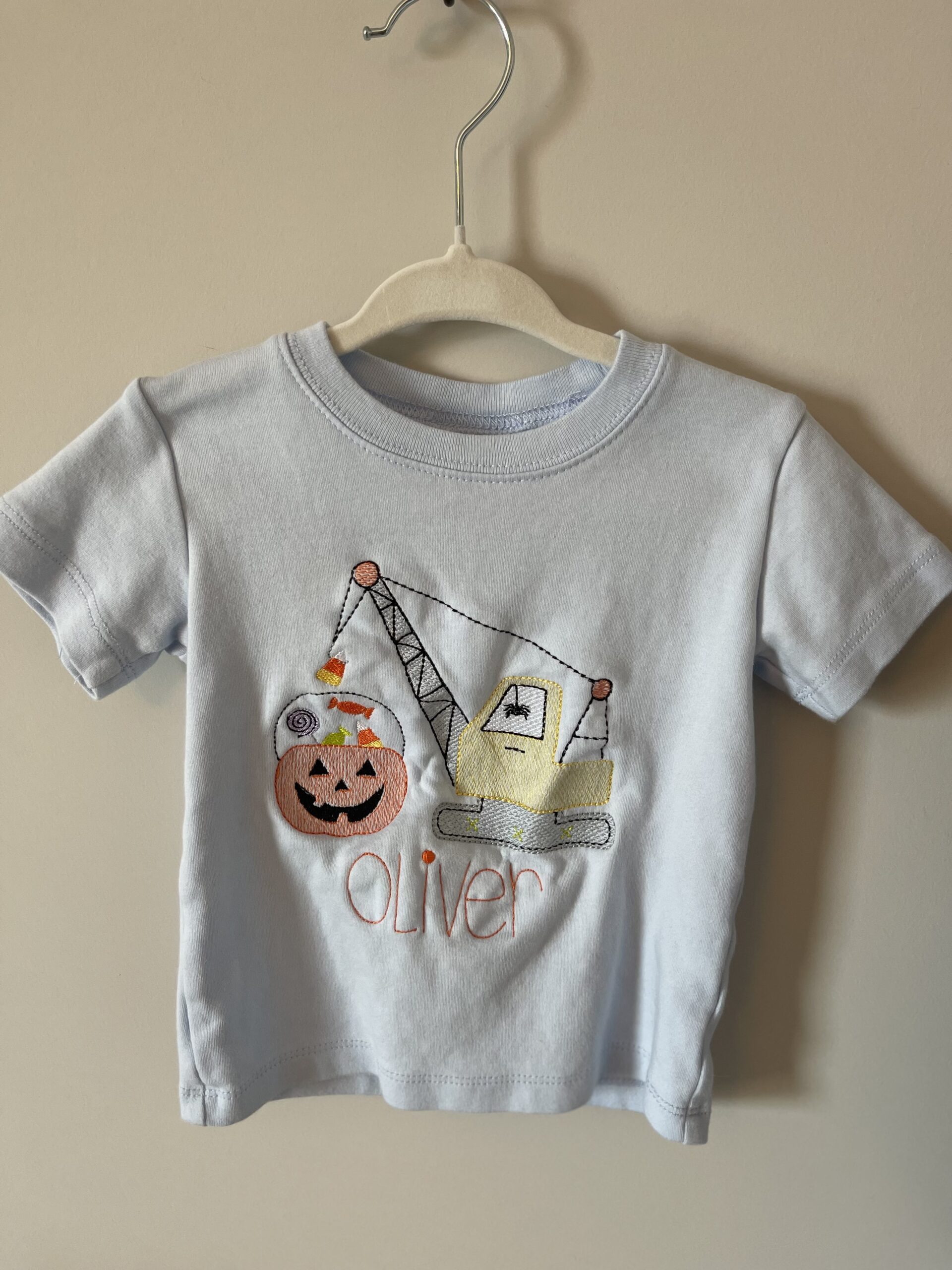 Short sleeve blanke boutique Halloween construction shirt.