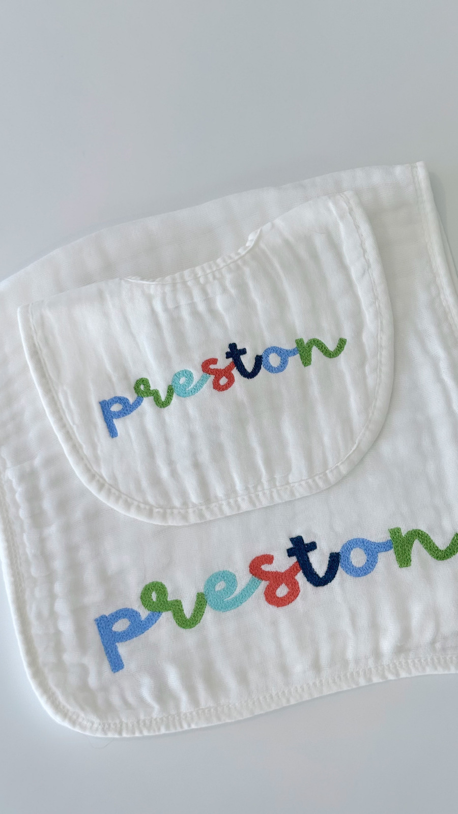 Muslin Bib & Burp Cloth Set. Name: Preston