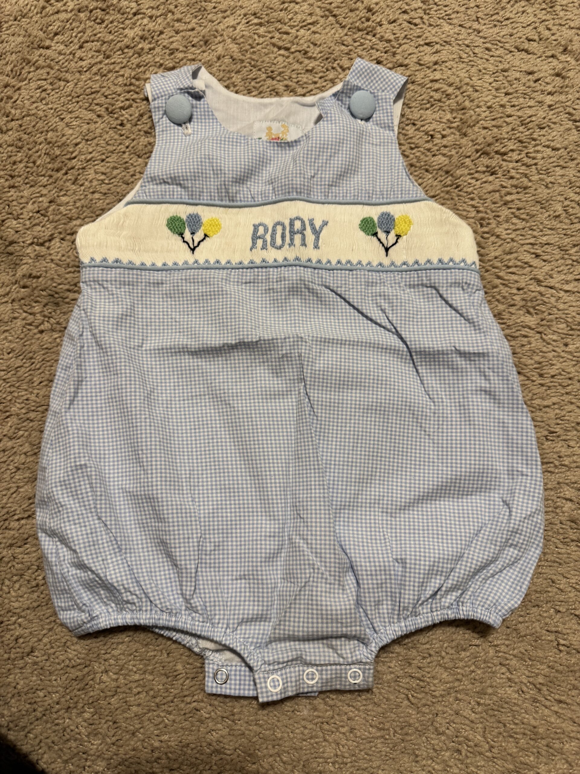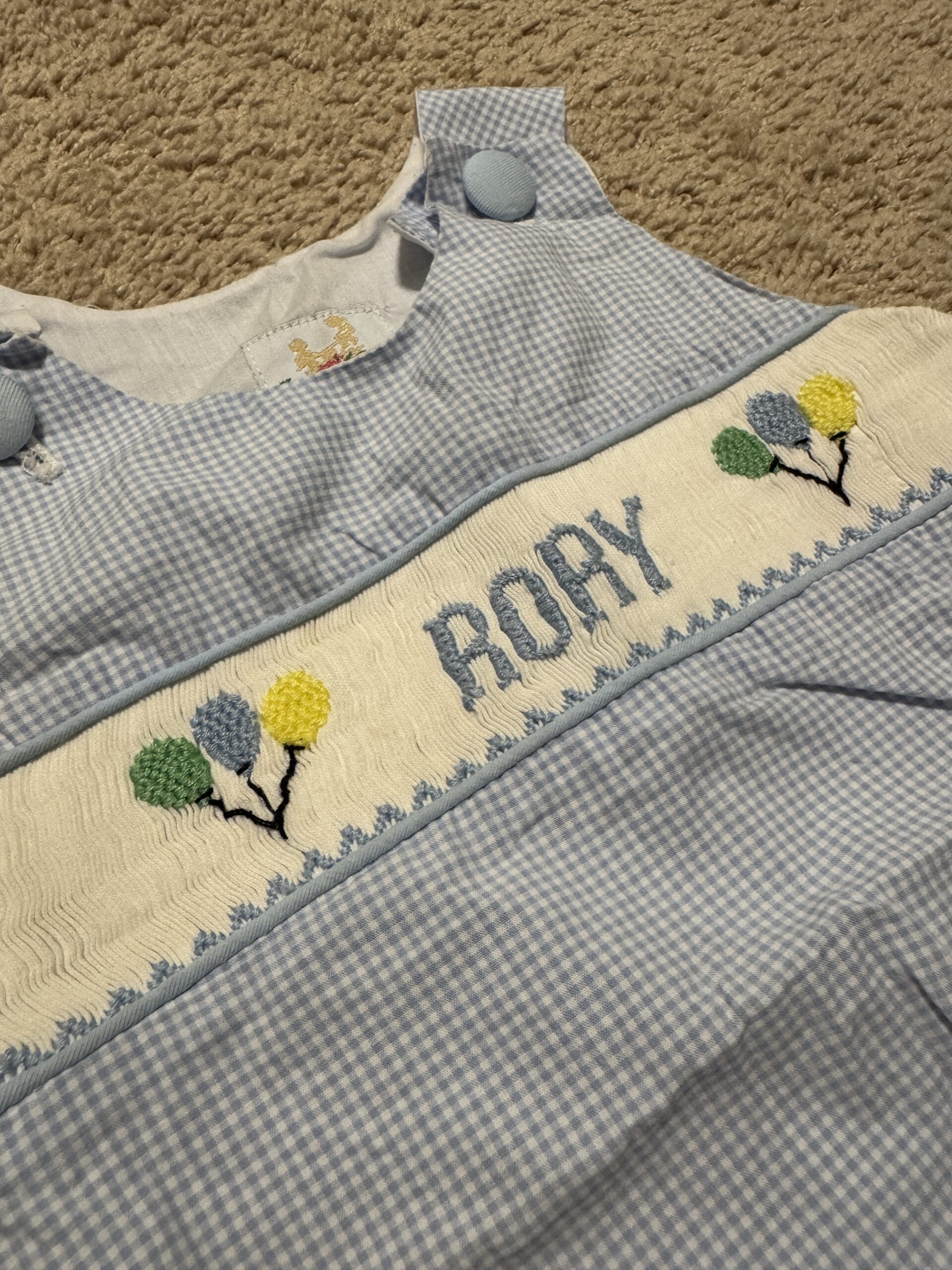 Light blue gingham Birthday balloon bubble from busy bees smocks