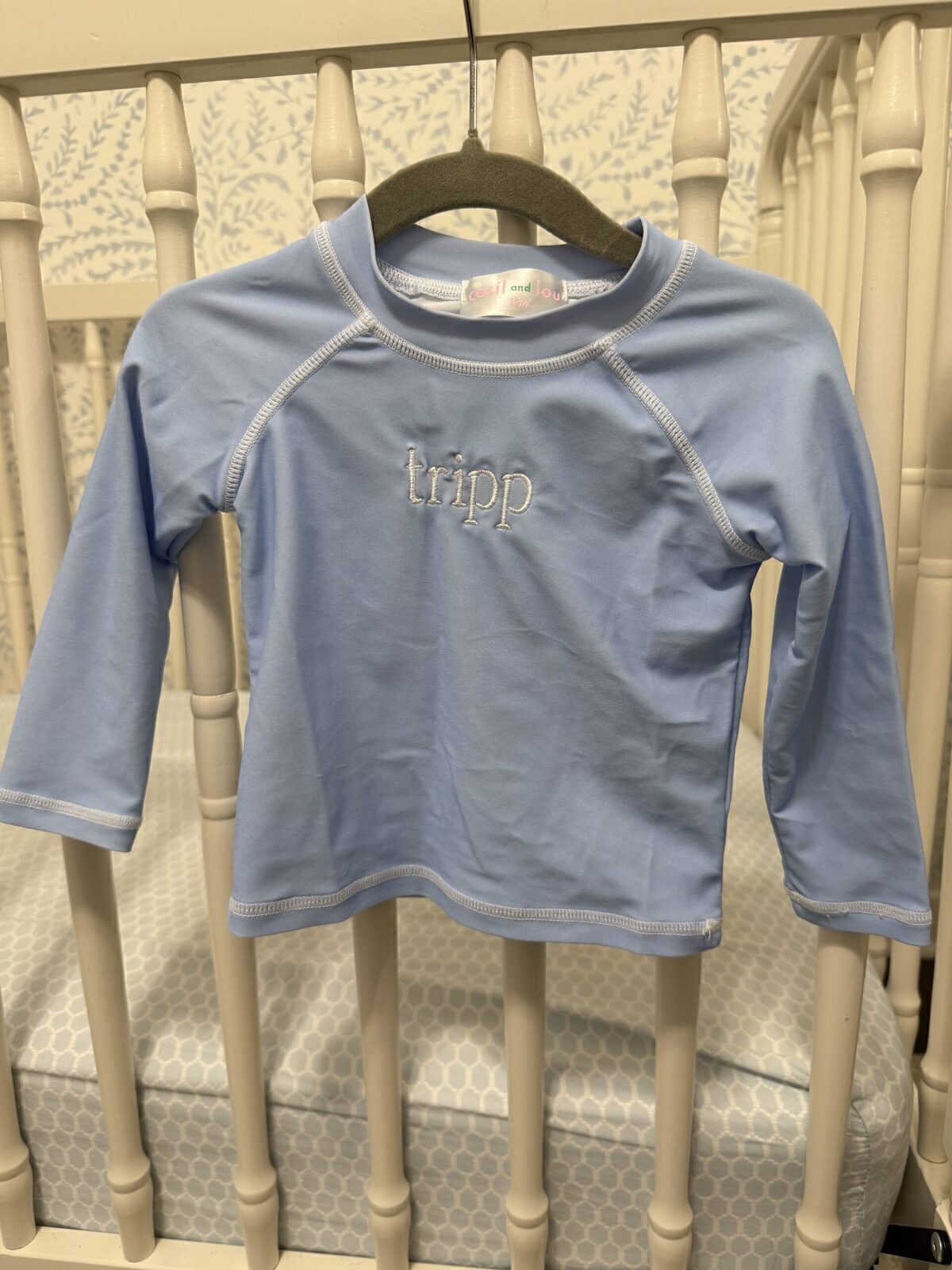 Cecil and Lou Tripp monogrammed rash guard swim shirt
