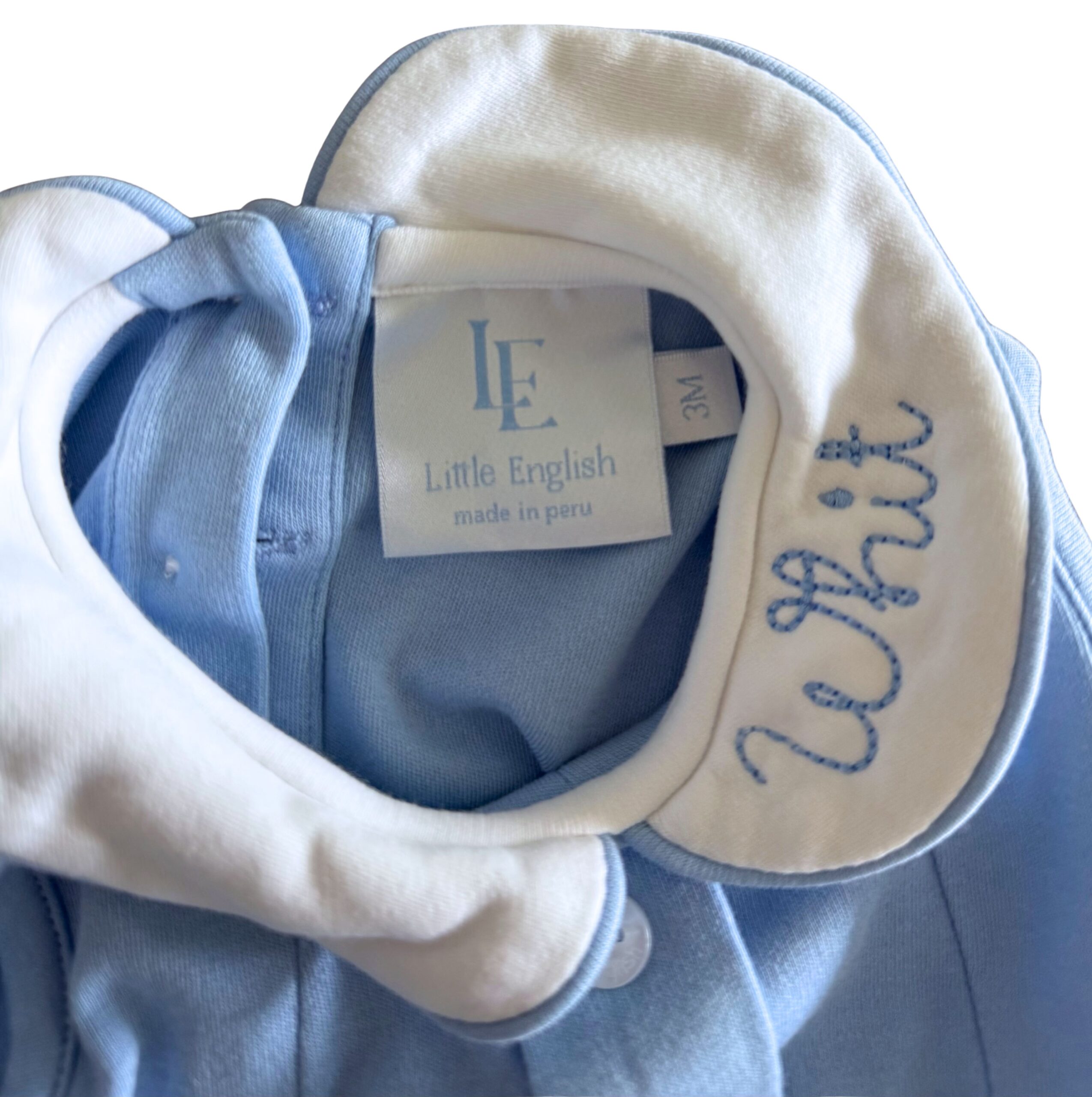 Little English boy’s blue 3M bubble with “Whit” embroidered on collar. Worn once!